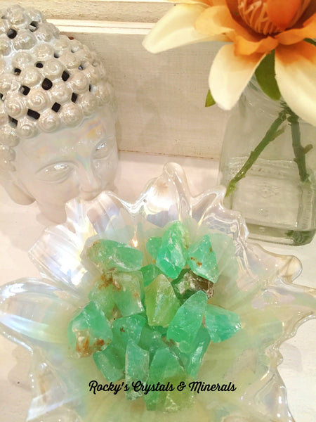 Green calcite is a grounding and centering stone that brings stability. It increases success, prosperity, business, and fertility of all kinds. It is an excellent stone for gardening. It is also considered a stone of manifestation because of it's ability to develop increase in all areas. Green Calcite may be used to assist in the manifestation process of prosperity and abundance. Green Calcite will also bring in the energy of trust, allowing that what has been manifested will be received. It is a wonderful stone when working with the Heart Chakra to bring emotional balance and knowledge of Divine Love.