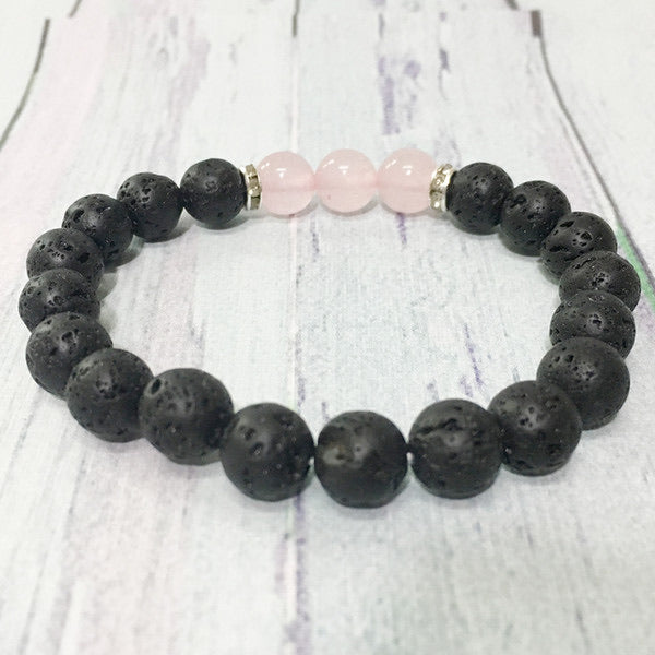 Beautiful Rose Quartz & Lava Stone Grounding Bracelet